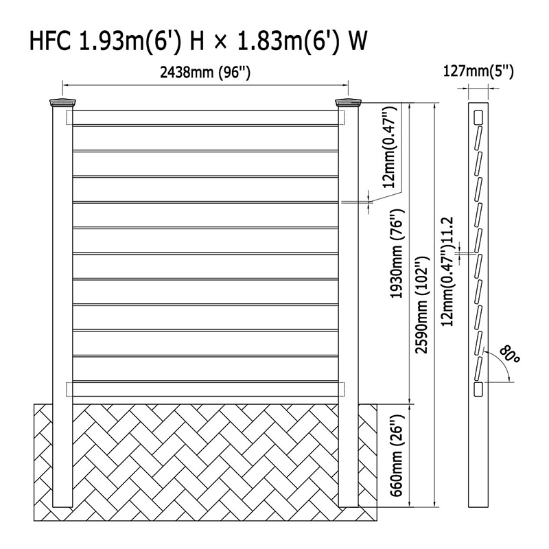 این سازه دارای یک ریل پایین از پیش قابل توجه (2 "x 3-1/2" x 70 '') است که سهولت نصب و ثبات را تضمین می کند. راه آهن میانه 7/8 "x 6" x 70 '' را اندازه گیری می کند ، و پشتیبانی اضافی را ارائه می دهد ، در حالی که راه آهن برتر (2 "x 3-1/2" x 70 ') نیز برای راحتی از قبل استفاده می شود. هر بخش دارای حجم 0.166 CBM است که آن را برای حمل و نقل و نصب کارآمد می کند.